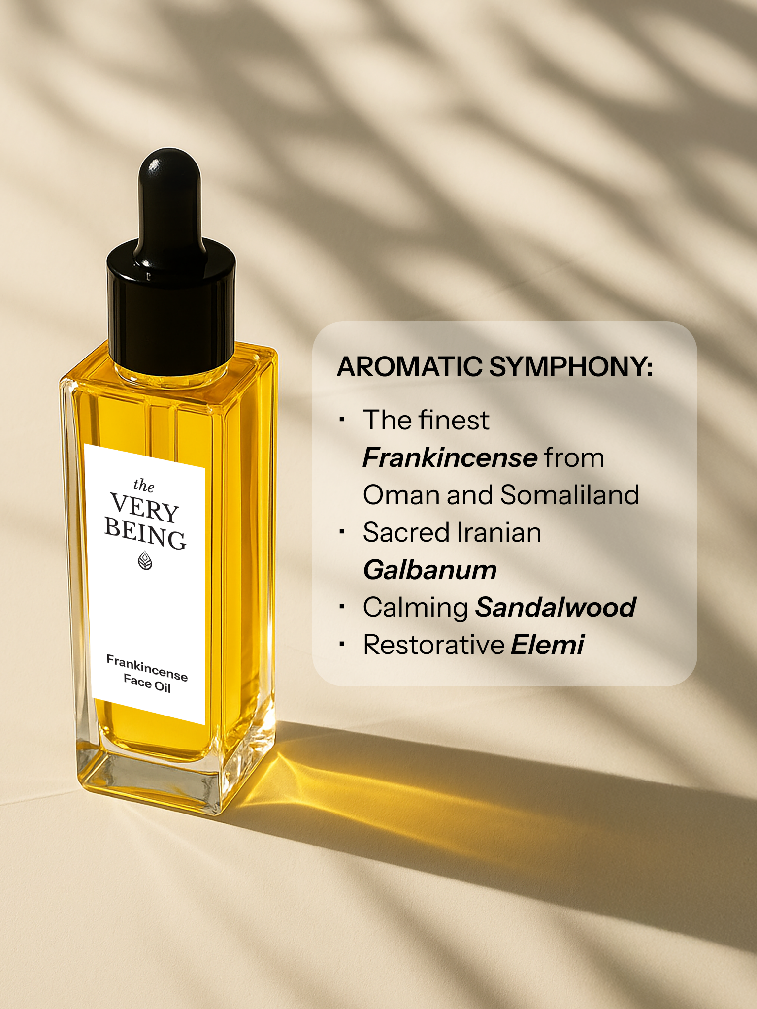At its heart lies a precious aromatic symphony: the finest Frankincense from Oman and Somaliland, sacred Iranian Galbanum, calming Sandalwood, and restorative Elemi.